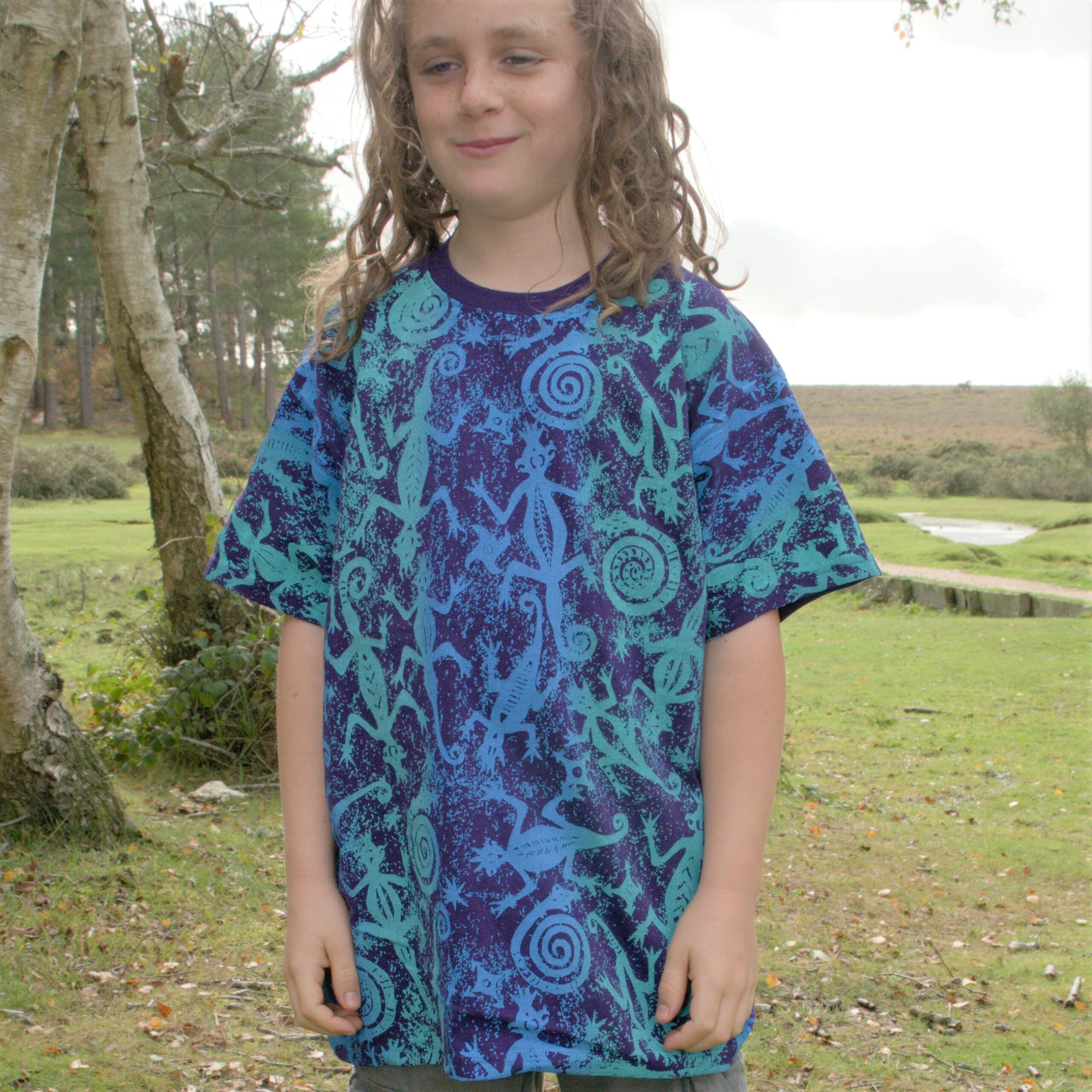 Hand screen printed childrens T shirts available in small sizes up to teenage sizes. Original designs, hand dyed and hand screen printed in the UK on to natural fabrics using environmentally friendly inks. For young people with style! For any special requests for your child please get in touch.