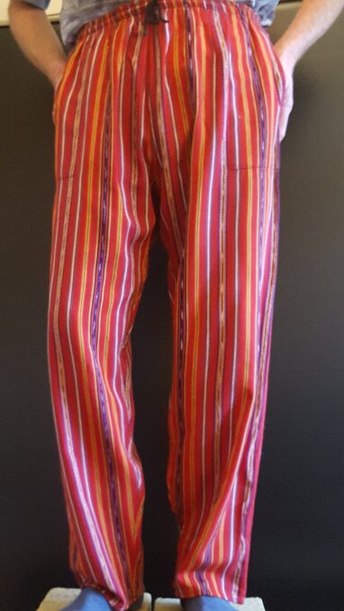 Hand woven trousers from the beautiful region of Lago Atitlan, Guatemala. Bought direct from the weavers who use traditional designs and colours to create comfy well made trousers. 100% cotton and perfect for lounging around and enjoying life!