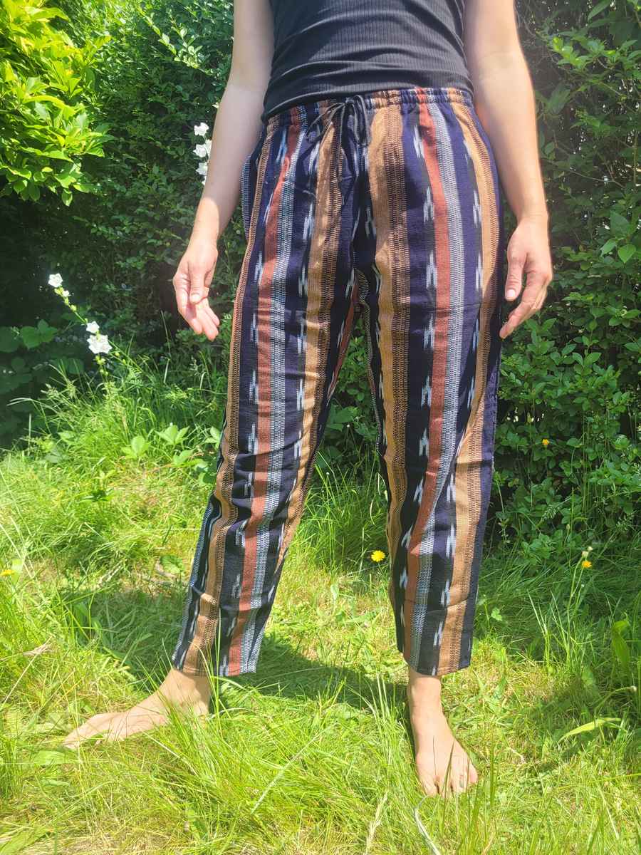 Hand woven trousers from the beautiful region of Lago Atitlan, Guatemala. Bought direct from the weavers who use traditional designs and colours to create comfy well made trousers. 100% cotton and perfect for lounging around and enjoying life!