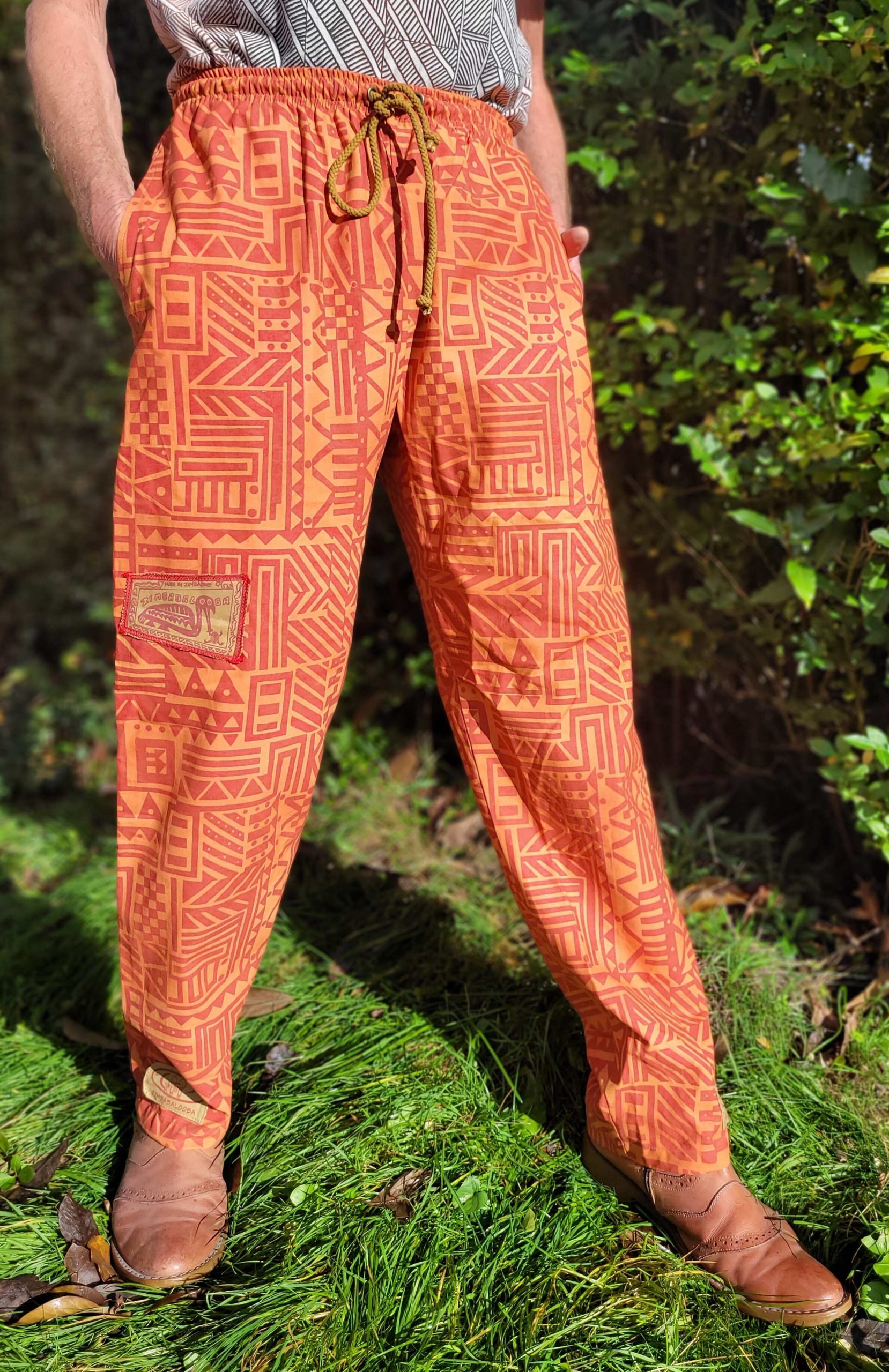 Hand dyed and hand screen printed, 100% cotton trousers from Zimbabwe. Perfect for climbing, yoga, cycling or hanging around! We have been working with Zimbabalooba since 1999 and their small business in Harare, produce a fantastically strong and well made product in an amazing blend of colours; a product our outgoing customers are sure to appreciate.