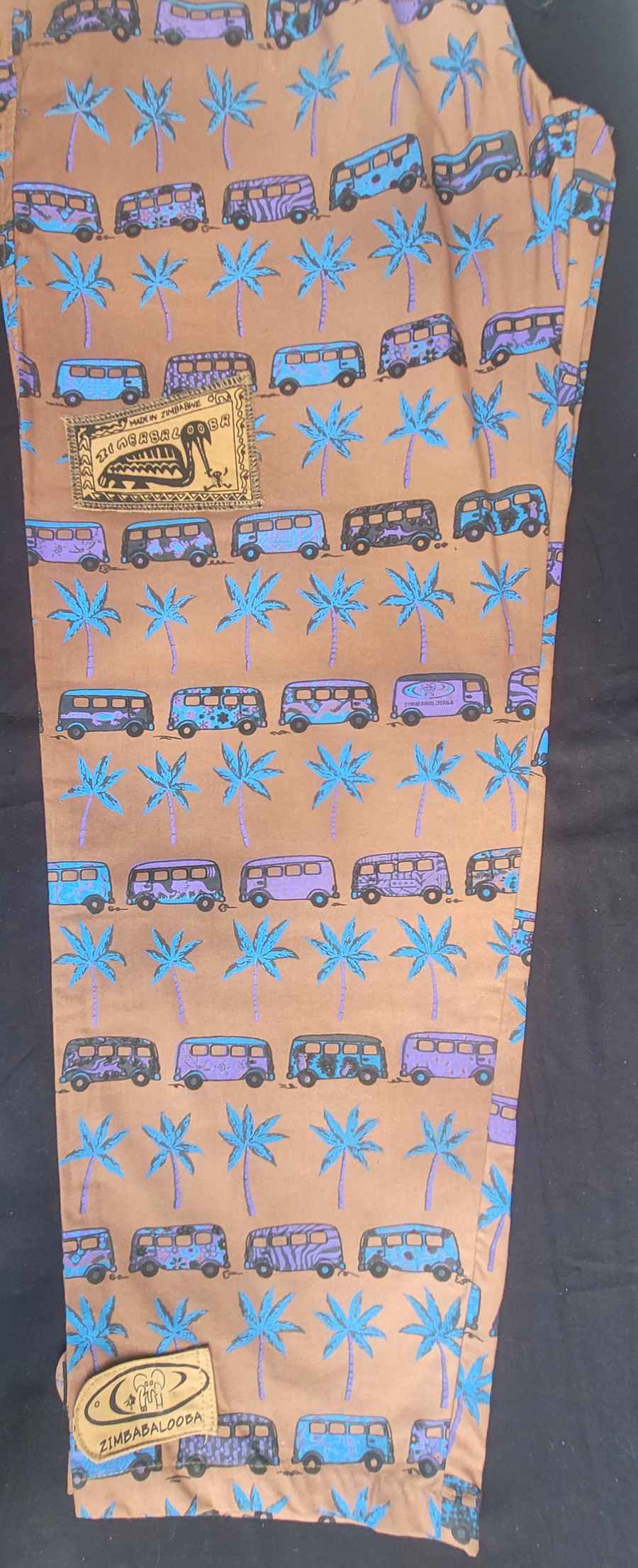 Hand dyed and hand screen printed, 100% cotton trousers from Zimbabwe. Perfect for climbing, yoga, cycling or hanging around! We have been working with Zimbabalooba since 1999 and their small business in Harare, produce a fantastically strong and well made product in an amazing blend of colours; a product our outgoing customers are sure to appreciate.