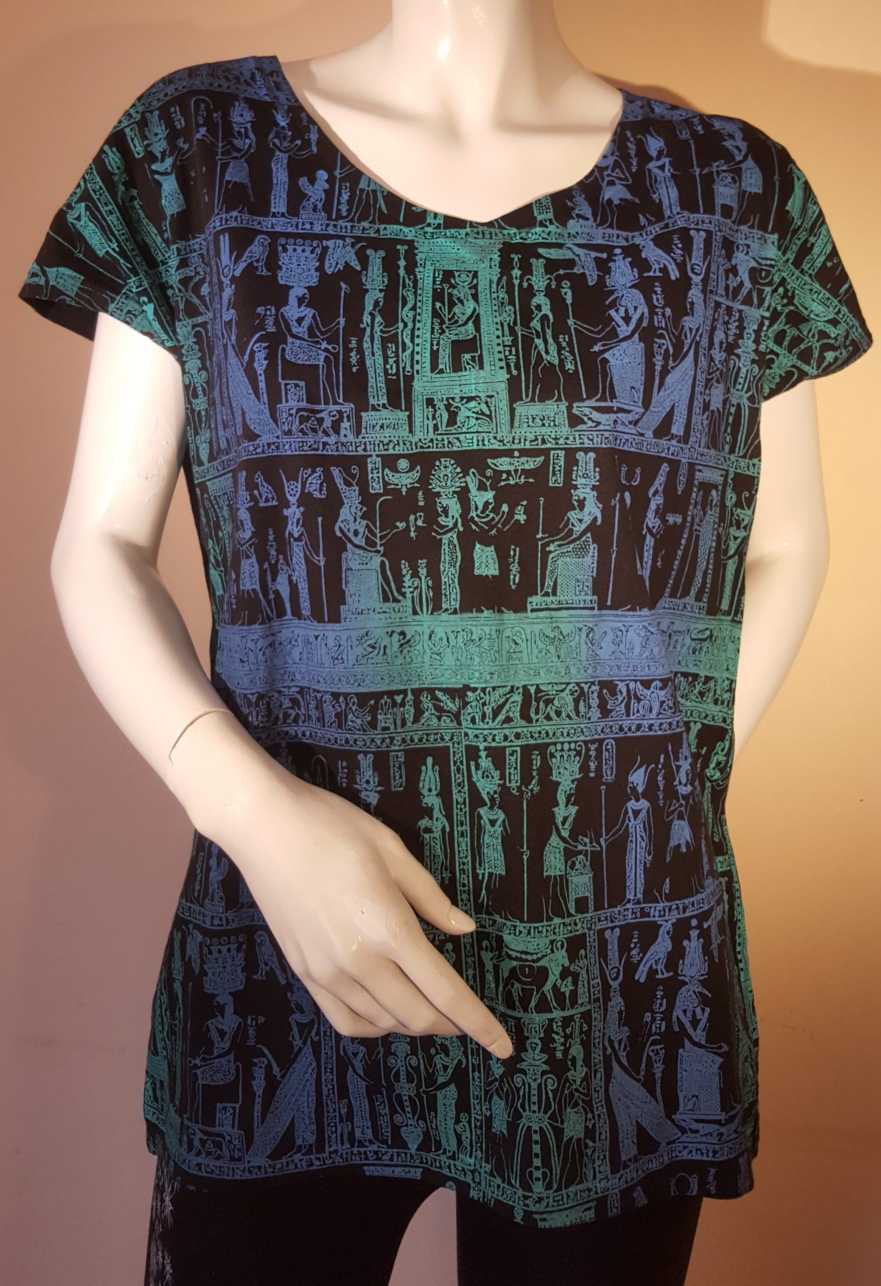 Ideal for free thinkers who like individuality. Unique all over hand screen printed women’s top made in England using environmentally friendly water based inks to produce a high quality garment with a long lasting print.