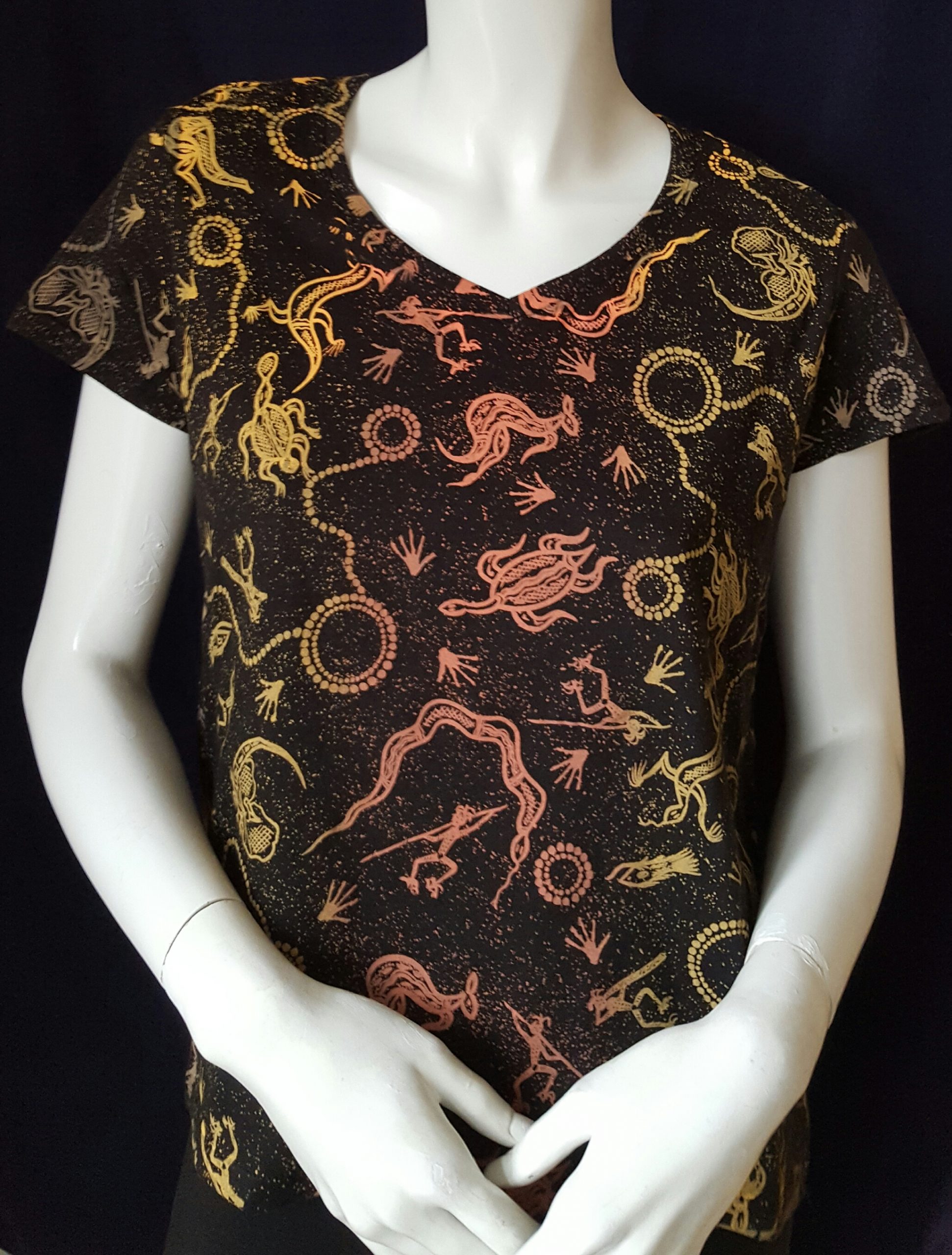 Ideal for free thinkers who like individuality. Unique all over hand screen printed women’s top made in England using environmentally friendly water based inks to produce a high quality garment with a long lasting print.