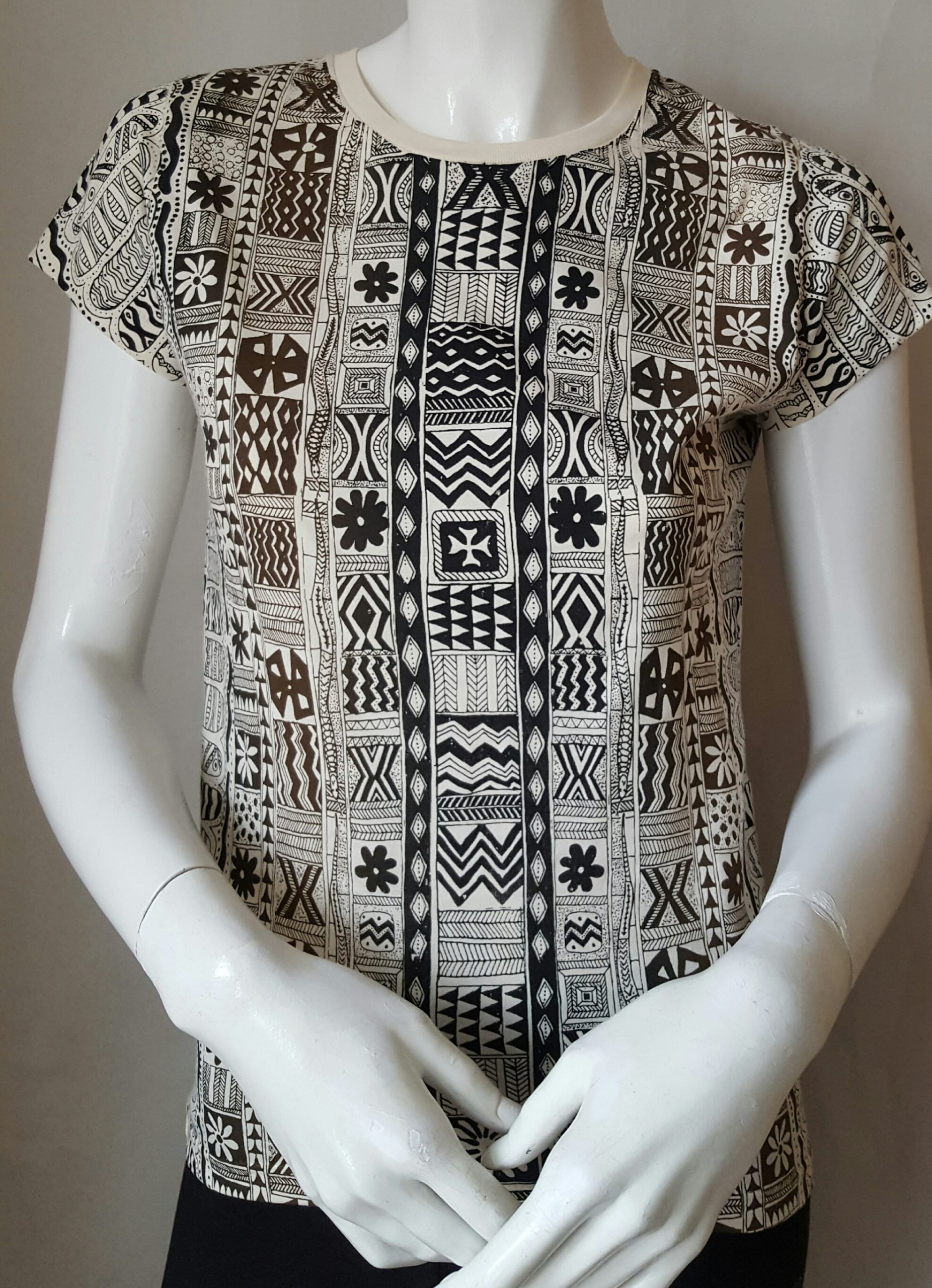 Ideal for free thinkers who like individuality. Unique all over hand screen printed women’s top made in England using environmentally friendly water based inks to produce a high quality garment with a long lasting print.