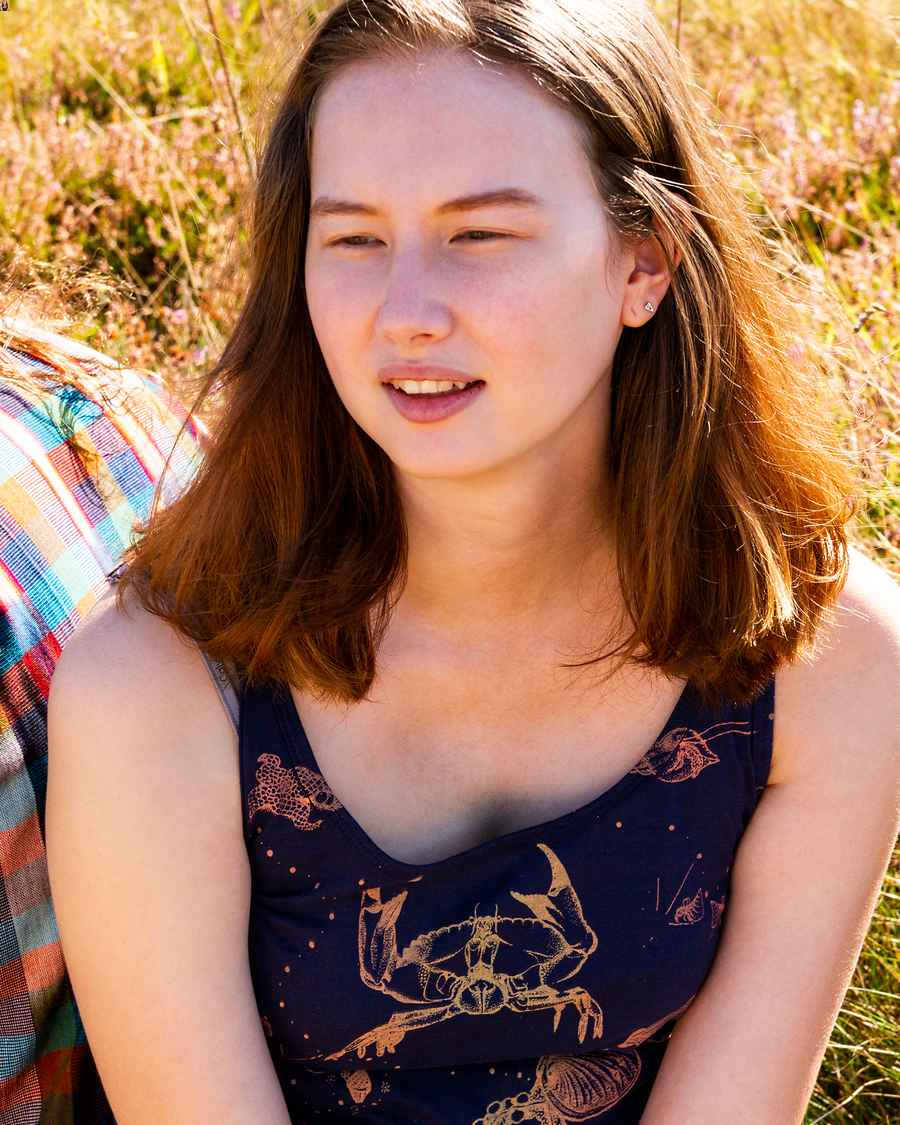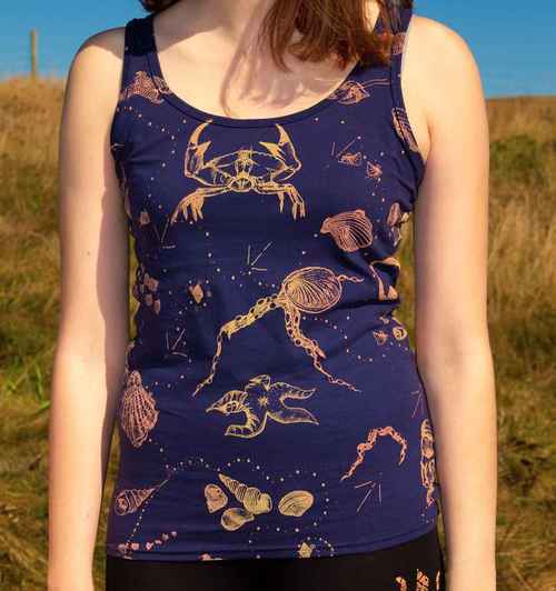 Ideal for free thinkers who like individuality. Unique all over hand screen printed women’s top made in England using environmentally friendly water based inks to produce a high quality garment with a long lasting print.