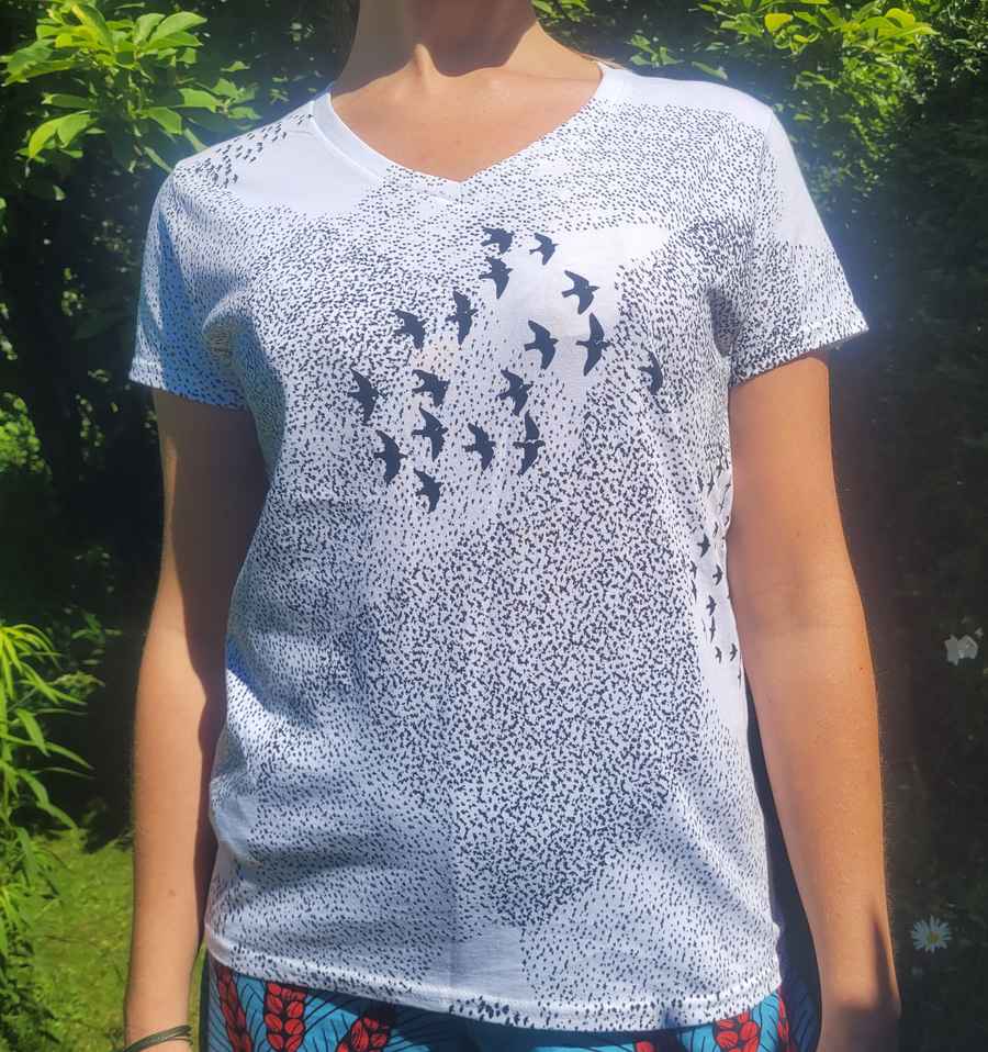 Ideal for free thinkers who like individuality. Unique all over hand screen printed women’s top made in England using environmentally friendly water based inks to produce a high quality garment with a long lasting print.